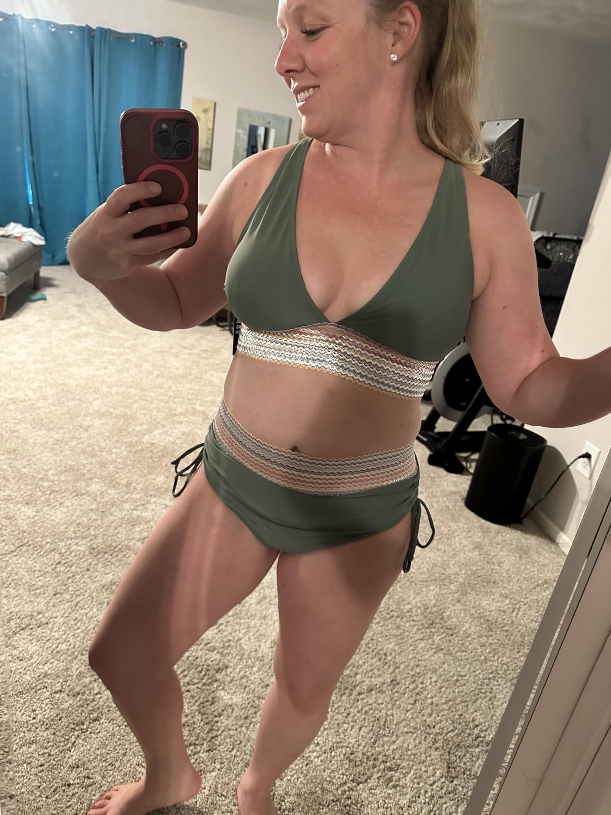 I tried this swimsuit for our beach trip and wow β the high waist really flattens my tummy and the V-Hip design lifts my butt perfectly π! I felt confident and sexy all day.