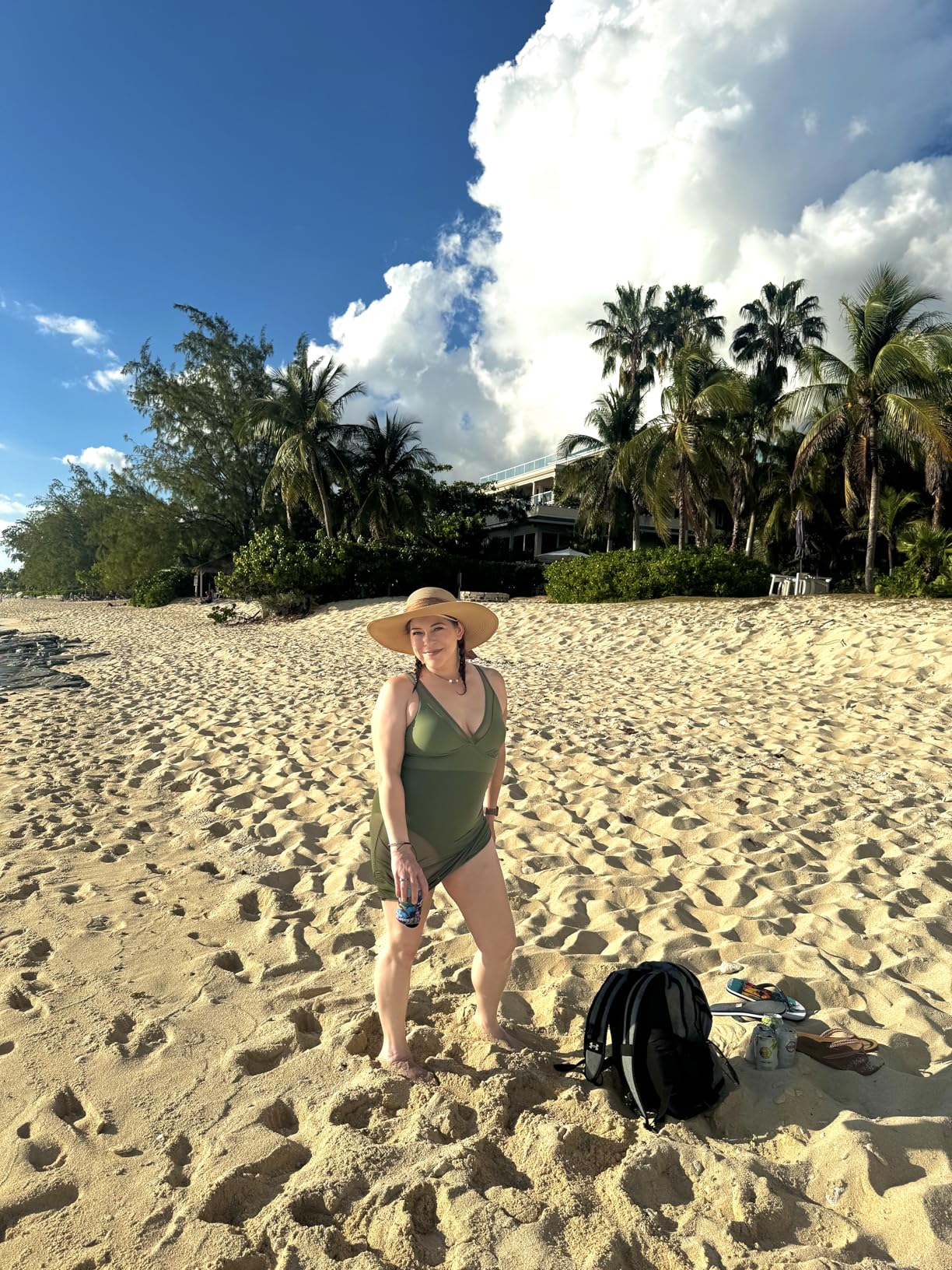 Tucked in at all the right places such a cute bathing suit. Dang, I look great in this!