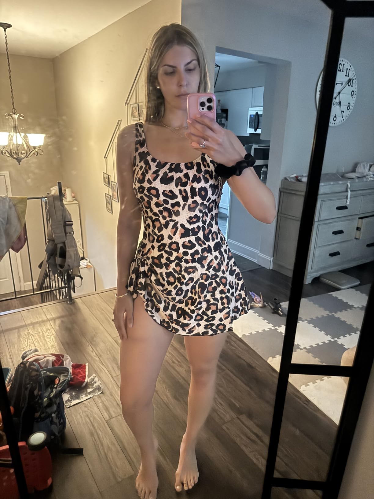 Such a flattering swimsuit with full coverage but also cute. I love that I can wear it to the splash pad orwater park to my kids and it looks like a dress. Adjustable straps are super helpful.